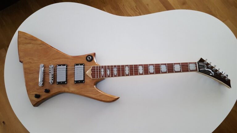 Elektrisk guitar, hvor kunden selv har tegnet indlæg til halsen