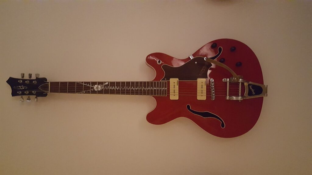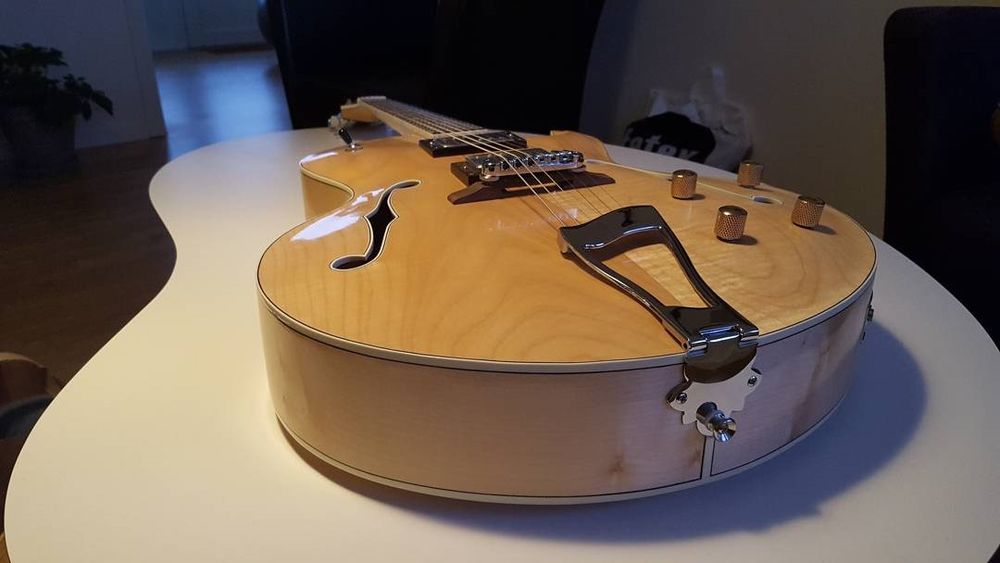 HollowBody guitar med Perlemors Lynlås på gribebræt
